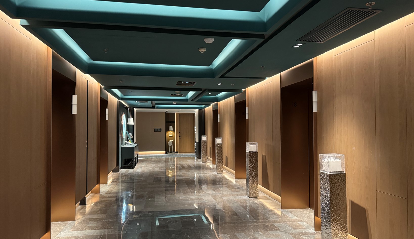 从公区到电梯房的镜面设计、以及客房标识和镜面,将军营军事元素与数字化科技集合,呈现LED无限镜概念。 亚克力、金属、3D立体效果的像素块、LED等材质与数字化科技结合,呈现现代艺术美学,打造现代时尚生活空间。