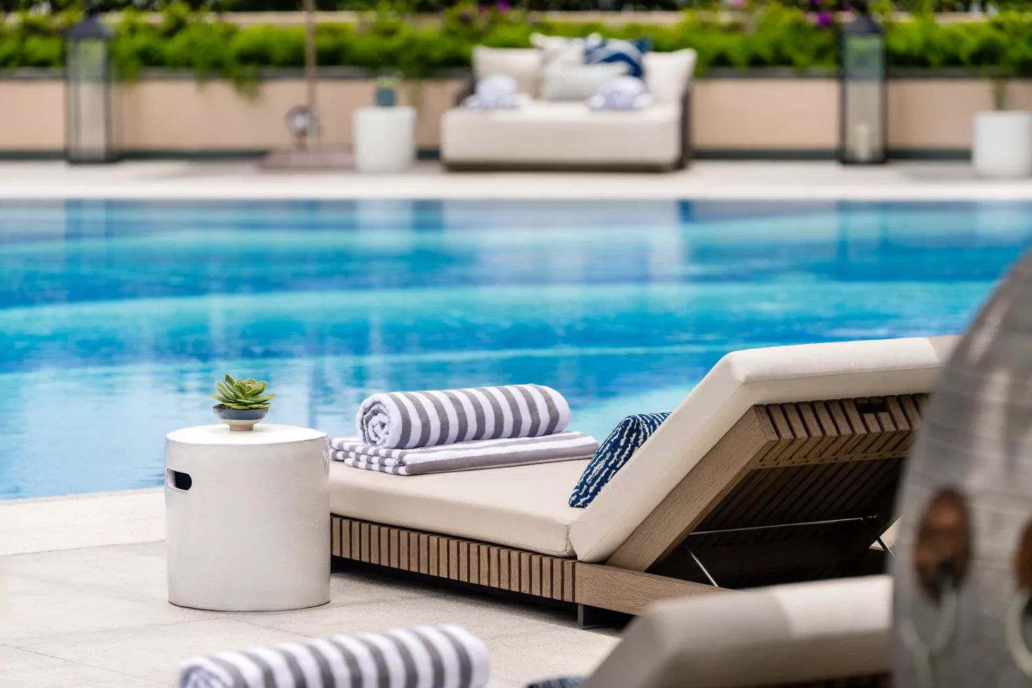 私享之境区域、特定房间类型设有窗前躺椅,可俯瞰酒店广场及九龙半岛,或泳池露台景观,或欣赏维多利亚港东隅日出海景,或维多利亚港全景以及港岛天际线。