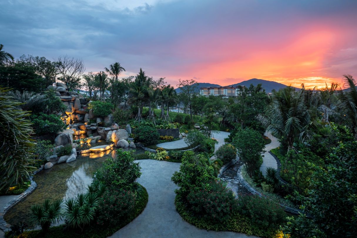 大堂水院、儿童水上乐园、户外泳池以及恒温泡池等等,使得“水”以不同功能贯穿酒店。山谷花园,沉浸式森林浴,将小溪瀑布、本地特色热带植物、景观融于一园,形成微缩的热带雨林景观。